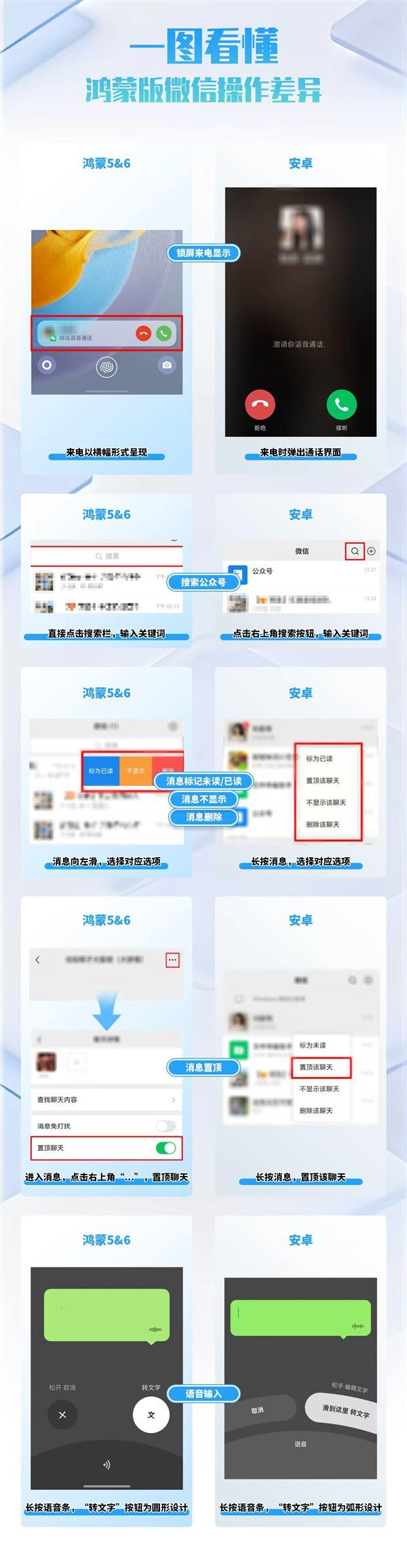 在日常沟通场景中,鸿蒙版微信的细节优化覆盖了多场景高频痛点。语音通话来电时,若你正在刷视频、看文章,鸿蒙版会以弹窗形式直接悬浮在当前界面,点击弹窗就能直接接听,无需退出当前应用;而安卓版需要先点击弹窗进入通话页面,再点接听按钮,多一步操作就可能错过及时响应。