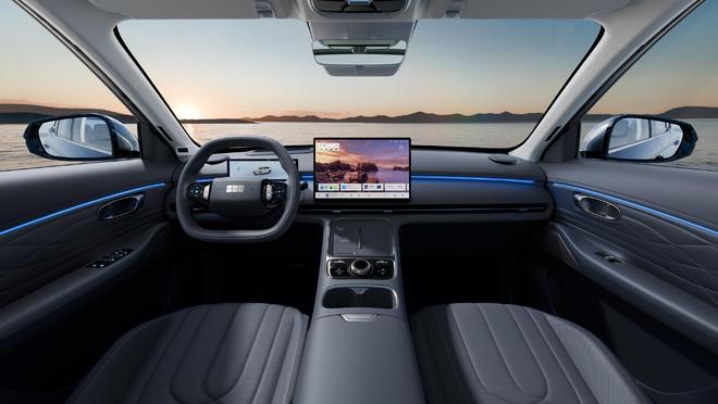 新款星舰7 EM-i依然基于“涟漪美学”打造,前脸采用封闭式格栅,搭配星环式银河涟漪贯穿灯带,1820mm的贯穿式日行灯两侧,如同月光涟漪一般的示宽灯,再次强调了其“涟漪美学”的色彩。而此次,新车为了满足用户更多主流需求,还新增了三潭映月.星海蓝车身色以及星舰灰内饰色,诠释出东方意境与科技美学的独特魅力。