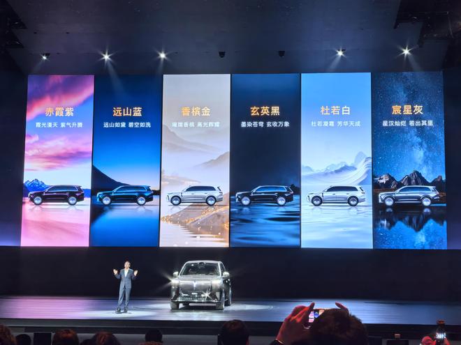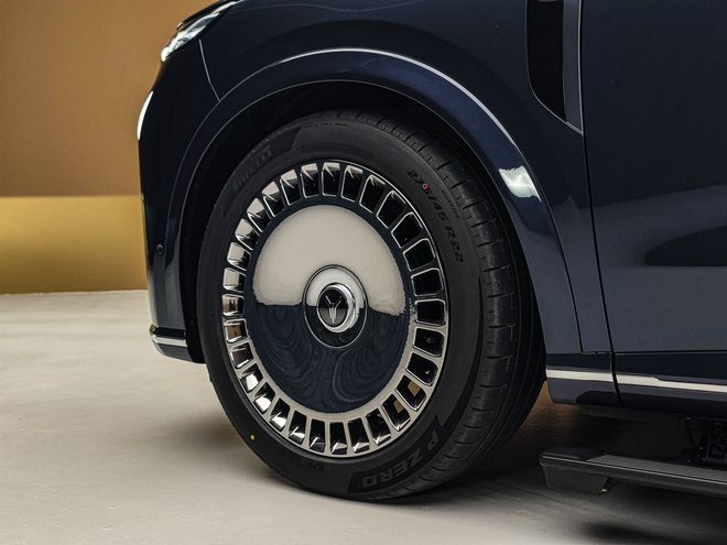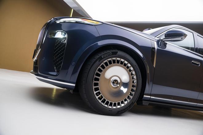 该车有多款车身颜色可选,分别为玄英黑、宸星灰、香槟金、杜若白、赤霞紫、远山蓝,双拼色则有鎏金紫和玄墨金两种。轮胎方面则搭载了来自倍耐力的P zero高性能轮胎,尺寸为275/45 R22,除“大饼”式造型外,还有其他样式可选。