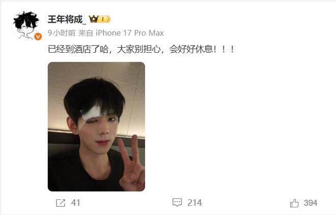22日,短剧演员王年将成在拍戏时疑似被对手演员真打受伤,视频中可听见打到脸时很大一声,随即王年将成捂脸险些倒下,迟迟没有缓过来。稍晚,他发博公开眼部淤紫肿胀照片,称已到酒店,“大家别担心,会好好休息!!!”