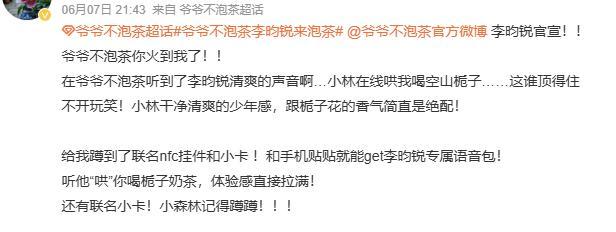 爷爷不泡茶将奶茶从简单的解渴产品变为货币的秘诀,除了高颜值设计自带的话题度之外,还有代言人和联名的选择。
