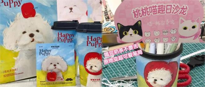 “苹果狗”系列则凭借治愈系萌宠包装,配套冰箱贴、帆布袋等周边,以及小红书上“猫狗双全”“喵桃你喜”标签,将饮品消费转化为萌宠社交的快乐仪式。