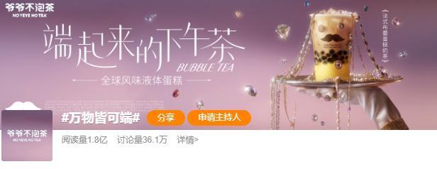 “全球风味液体蛋糕”系列中同步推出的银色托盘、blingbling贴纸等周边,更是将双向参与的仪式感推到了极致。爷爷不泡茶携手微博幽默发起的抽象互动,将“端”这一行为当做“端门”流派来进行研究,成立了端学研究会。