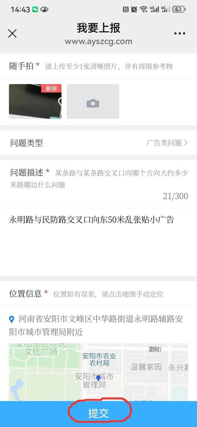 第七步:点击下方“提交”,完成问题上报。