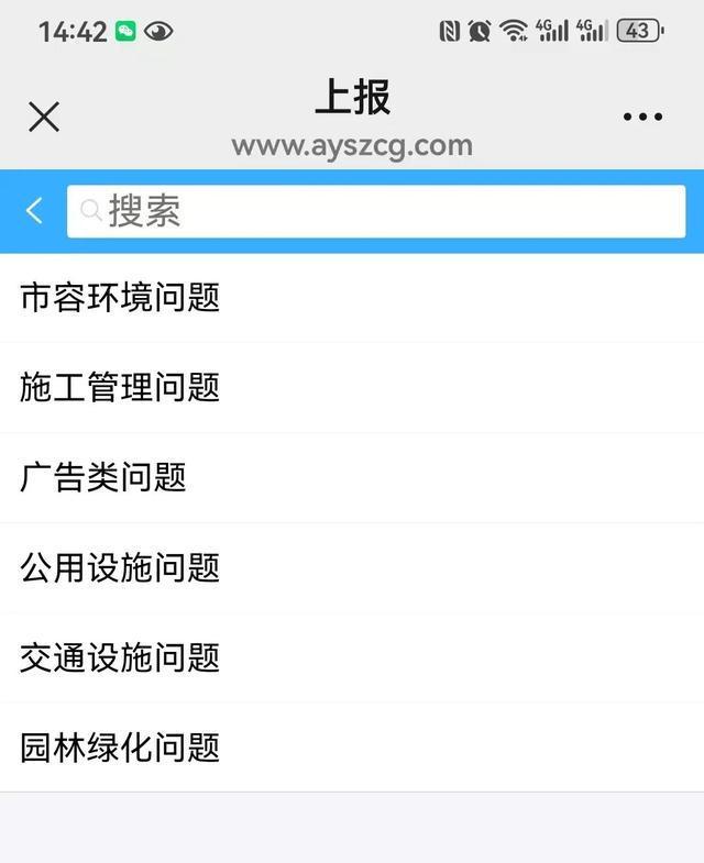 第五步:进入“上报”界面,选择反映的城市管理问题类型。