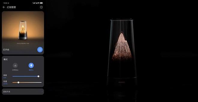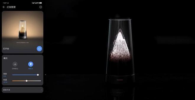 用户也可以通过自定义模式,在智慧生活APP中设定亮度和色温,可以精确控制模拟雪山的明暗和颜色,特别是色温从低到高,可以明显的观察到模拟雪山的颜色从暗红金色到银色的变化。