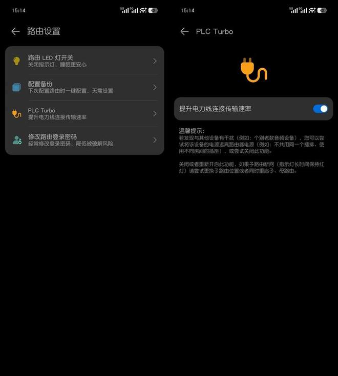 虽然我们收到的只是华为路由X3 Pro 日照金山单独本体,没有附带子路由,所以PLC电力网相关的测试都无法进行,但在路由设置中依旧可以打开PLC Turbo功能,提升电力网络连接传输速率。