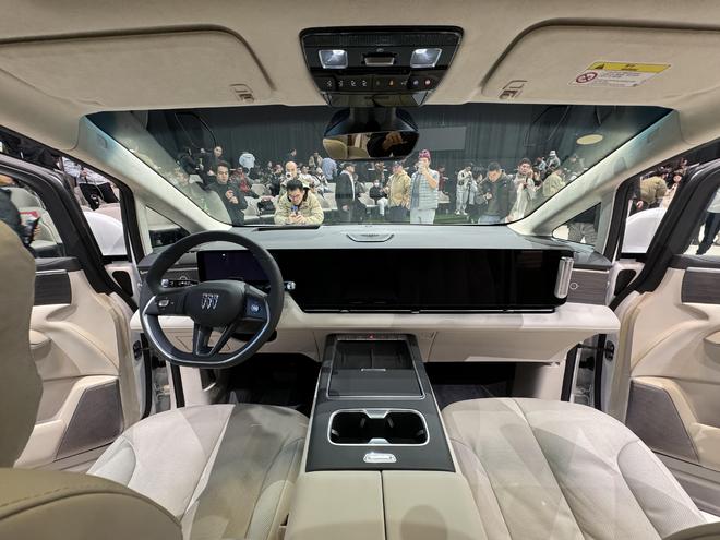 值得一提的是,其侧窗面积占比达 68%,配合全景天幕,车内通透感十足;中控台下方内凹设计为前排腿部预留更多空间,连通式副仪表台则拓展了储物能力,兼顾了驾乘便利性与空间利用率,完美适配商务接待、家庭出游、户外露营等多元场景。