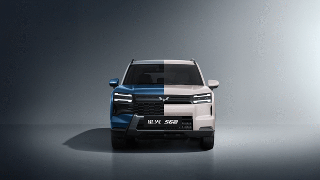 在设计上,五菱星光560有着硬朗的线条设计,前脸也是蜂窝状设计,并搭配壮实的前保险杠设计,而两侧LED光源以双横线设计更像时尚化的点缀。另据悉,围绕新车动力的不同,其前脸设计也会有一些差异,比如燃油版与插混版采用的就是黑色网状格栅,搭配棱角分明的前保险杠,而纯电版则以封闭式前脸+贯穿式灯带凸显新能源身份。