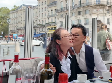 前段时间两人在法国度假,不仅喝交杯酒,还拥吻狂秀恩爱。