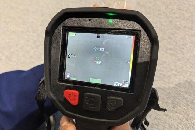 实验正式开始,消防员先用热成像仪测出矿泉水表面的温度为13.8℃。
