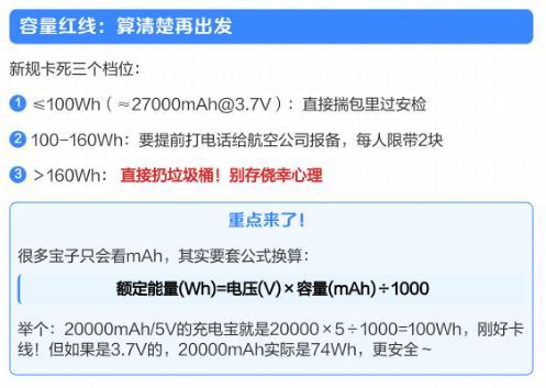 记住这个公式和通行标准,那么你就能跨入了携带充电宝登机的第一个门槛。