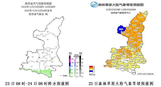 今天晚上:陕北晴天间多云,关中多云间阴天,陕南阴天。陕南南部局地有小雪或雨夹雪(0.1~1毫米)。日平均气温关中东部部分局地下降4℃左右。今日全省大部森林草原火险气象等级为3~4级(较高危险-高度危险),需注意防范。