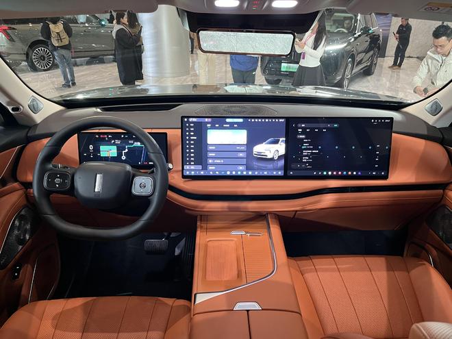 座舱系统搭载Coffee OS 3.4,支持多屏联动。前排双15.6英寸屏幕、17.3英寸后排娱乐屏与SR-HUD构成完整的信息显示体系,并支持前排对后排娱乐屏的可视化控制。