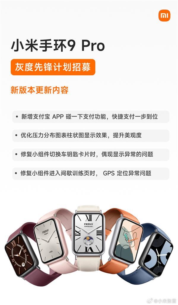小米手环9 Pro全新版本先锋计划启动,触碰支付功能重磅来袭