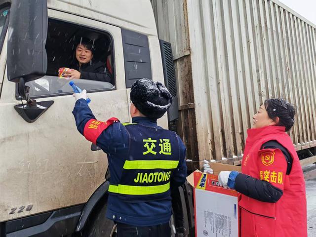 四是暖心服务显温情,践行初心暖旅途。在全力保通的同时,坚持“人民至上、服务为民”理念,同步推进保畅与服务双提升。在收费站设立“暖心驿站”,为滞留司乘提供开水、热食、火腿肠等应急食品,热情解答路况咨询、政策疑问,耐心开展情绪安抚;党员突击队熬制红糖姜枣茶,将一杯杯热饮递到寒风中的司乘手中,有效缓解极端天气下的出行困难。党员志愿者们以贴心服务传递高速温度,用实际行动践行初心使命,彰显交投人的责任与担当。