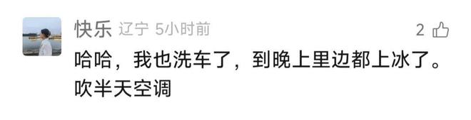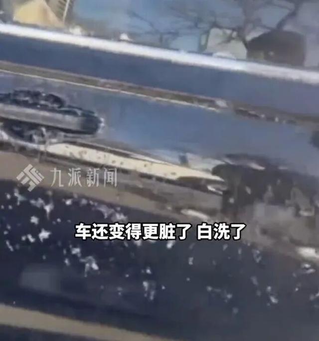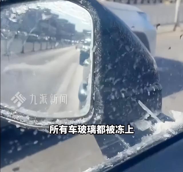 当时还是中午,洗车服务是加油站免费赠送的,沈女士想着白给的就洗了,然而当她坐在车里才看见,挡风玻璃上的水以肉眼可见的速度结冰,出来就变成“冰糖小汽车”了,所有车玻璃都被冻上。