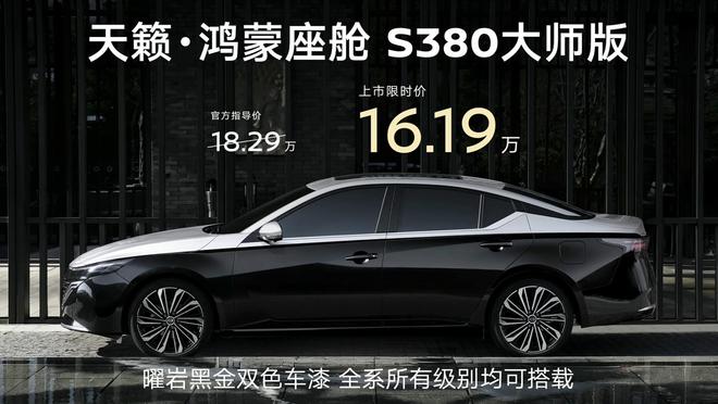 天籁·鸿蒙座舱S380大师版官方指导价18.29万元,上市限时价16.19万元。