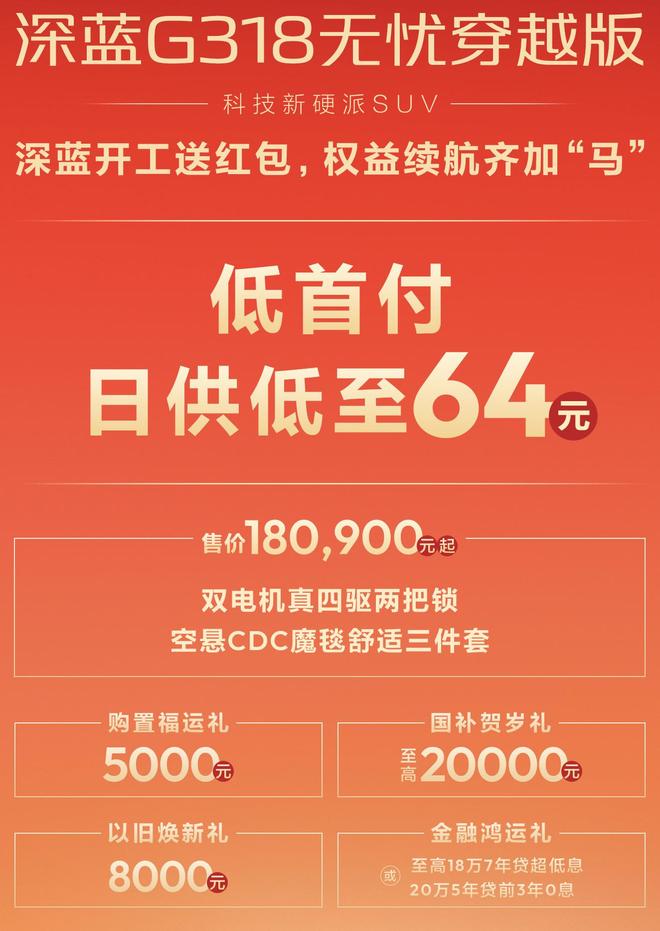 深蓝G318(参数丨图片)无忧穿越版限时购车政策