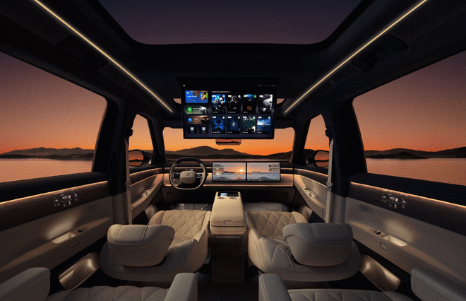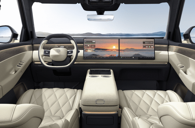 在智能化普及的今天,上汽大众ID.ERA 9X也提供了前排双联屏,两块15.6英寸超高清大屏可提供车控交互以及副驾的影音娱乐需求,对于后排乘客而言,头顶上方还布置了一块21.4英寸的折腾屏。另外,新车还有总长达12.8米且采用漫反射光处理技术的氛围灯,更好的表达车内放松的状态。