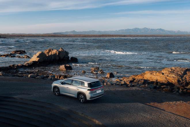车辆尾部,新车采用贯穿式尾灯设计,双层灯带设计,中央是自发光的车标,与前脸灯带形成呼应,尾灯内也隐藏了辅助驾驶小蓝灯,尾部还配备电动尾门以及低门槛设计。