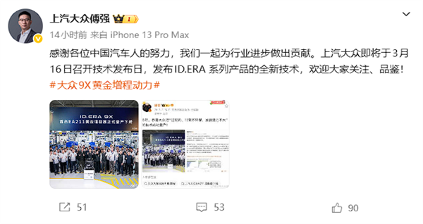 理想高管恭喜量产“过时增程技术” 上汽大众总经理直面回应