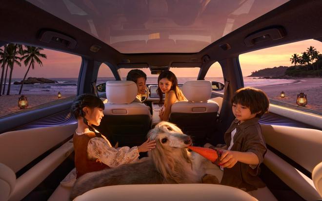 车身侧面有隐藏水切和隐藏式门拉手,车尾有2064颗OLED“量子光幕”尾灯,支持自定义灯语。新车尺寸为4870×1920×1680mm,轴距2917mm,提供19英寸和20英寸两种尺寸轮毂。
