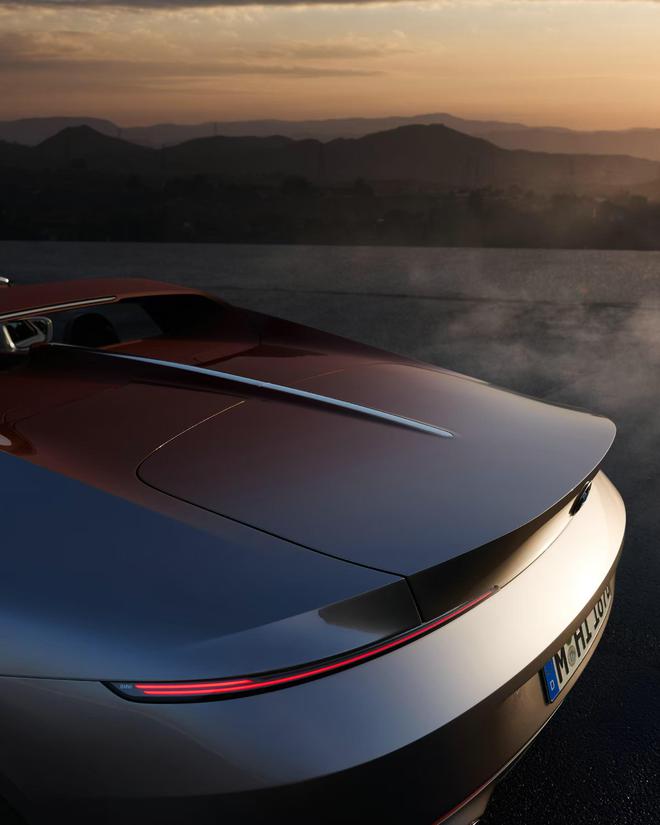 BMW Skytop不仅是宝马集团“创新美学”的代表作,更是对品牌“设计密码”的完美诠释。它既致敬经典,又面向未来,展现宝马品牌独有的辨识度。概念车的设计灵感来源于BMW 507和BMW Z8等经典敞篷跑车,车身线条简洁精准,雕塑般的车身造型蕴含着蓄势待发的力量感。从发动机盖延伸至内饰和尾门铝制装饰条的线条,强化了车辆的动态感和流畅感。车头箭形设计、标志性的鲨鱼鼻造型以及紧致利落的尾部设计,都是对经典细节的复刻与致敬。