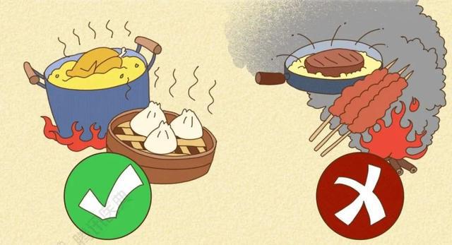 多用蒸、煮、焯,避免煎炸、烧烤和熏烤。