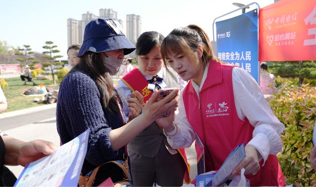 电信安全宣传展区,中国电信郑州分公司的志愿者们身着红马甲,热情地向过往市民发放反诈宣传资料,细致讲解“诈骗短信”“恶意软件”等生活常见陷阱识别方法。特别是展区内的互动活动,通过模拟诈骗场景,穿插讲授财产安全小知识,教学并施,引得大量市民驻足。