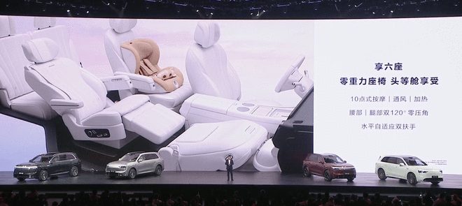 问界M8提供六座、大五座两种布局。全系标配座椅通风、加热及按摩功能。六座版车型二排搭载零重力座椅,带来头等舱般享受;大五座搭载二排准零重力座椅,靠背支持最大43°调节,实现更舒展的乘坐姿态。