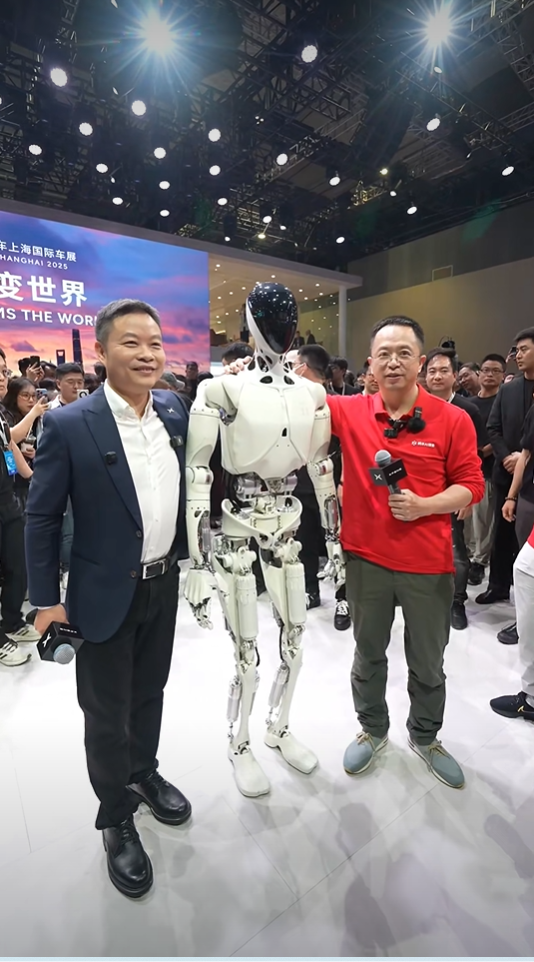 何小鹏和神秘嘉宾周鸿祎现身小鹏汽车展台,共同参观小鹏机器人IRON的车展首发表演。周鸿祎说道:“他们有人预言五年之后地球上有七十亿人、七百亿机器人。”何小鹏回应:“我认为机器人进入家庭需要几年时间,也许五年、也许十年。”