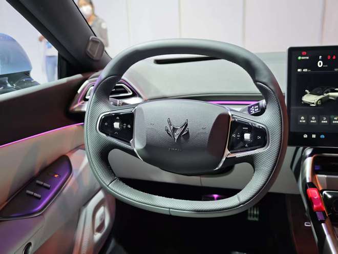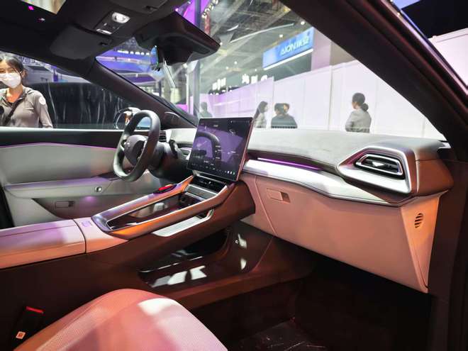 内饰上采用68英寸AR-HUD和15.6英寸中控屏组合,全系标配高通8155芯片,支持Switch投屏及外接游戏手柄,搭配Microcloud超纤维绒材质与一体式云绒座椅,兼顾科技感与豪华舒适性。