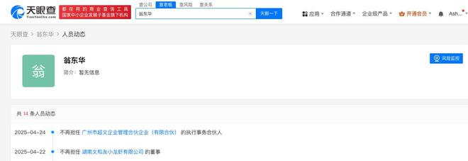 值得一提的是,近期,翁东华还卸任了湖南文和友小龙虾有限公司的董事职位。