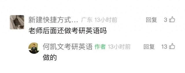 4月27日,在何凯文考研英语公众号中,有网友提问“老师后面还做考研英语吗”,何凯文回复称“做的。”