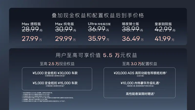 1.5,000元定金抵扣30,000车款元(仅限暗夜骑士版享受该权益)