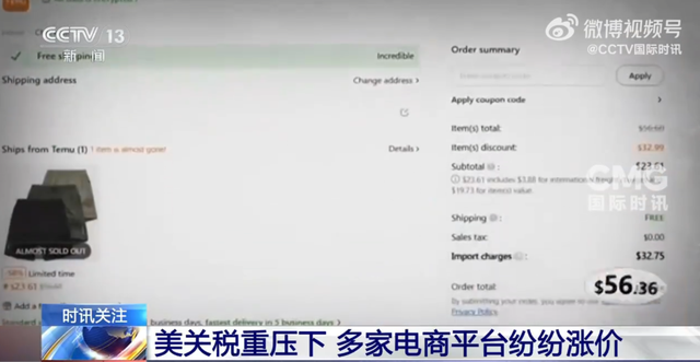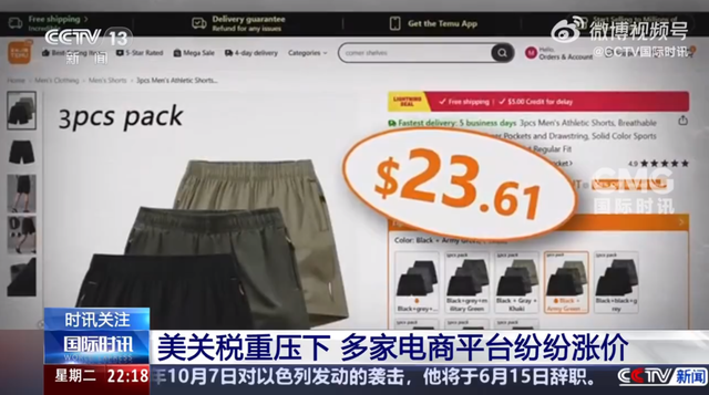在美国的关税重压下,多家电商平台纷纷涨价,有的商品价格翻了一番多,还有部分商品价格更是最高上涨了377%。许多消费者无奈表示将承担转嫁而来的关税成本。而美媒记者表示,涨价这才“刚刚开始”。