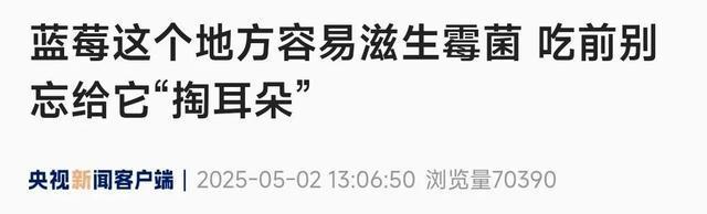 网友:“原来蓝莓这个地方这么脏!”“难怪蓝莓通便…合着我是吃坏肚子了啊” 有人还分享了用棉签清洗蓝莓的方法,吃之前一定要记得给蓝莓“掏耳朵”。
