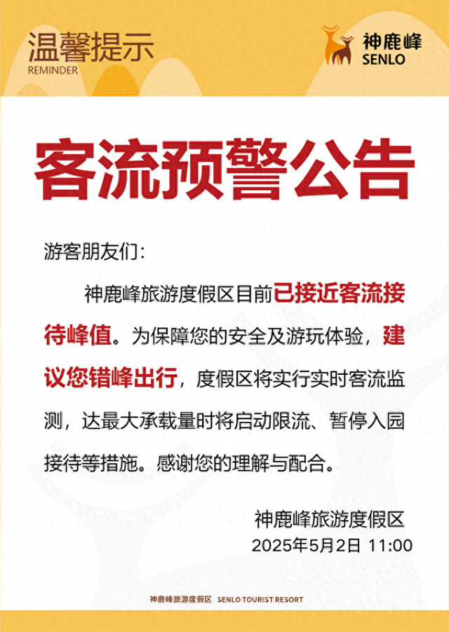 长春一知名景点客流预警公告 访客 2025-05-02 15:26:24 51111 抢沙发 默认 5月2日神鹿峰旅游度假区微信公众号发布客流预警本日客流将达上限,请合理安排行程来源:神鹿峰旅游度假区 标签: 客流 旅游度假 海报 阅读 QQ 分享 微博分享 微信分享 分享 上一篇价格已腰斩,以前论克买,现在按斤算!重要提醒:吃之前别忘了“掏耳朵” 下一篇日本3个月前坠坑老人确认死亡,家属发声 价格已腰斩,以前论克买,现在按斤算!重要提醒:吃之前别忘了“掏耳朵”上一篇 日本3个月前坠坑老人确认死亡,家属发声下一篇 相关推荐 客流旅游度假 上海崇明猪肝红预警发布,游客爆满,出行提醒! 2025-09-30 12306提醒春运无购票加速包 官方渠道更安全可靠 2025-01-01 发表评论取消回复 快捷回复: 评论列表 (暂无评论,51111人围观)参与讨论 还没有评论,来说两句吧...