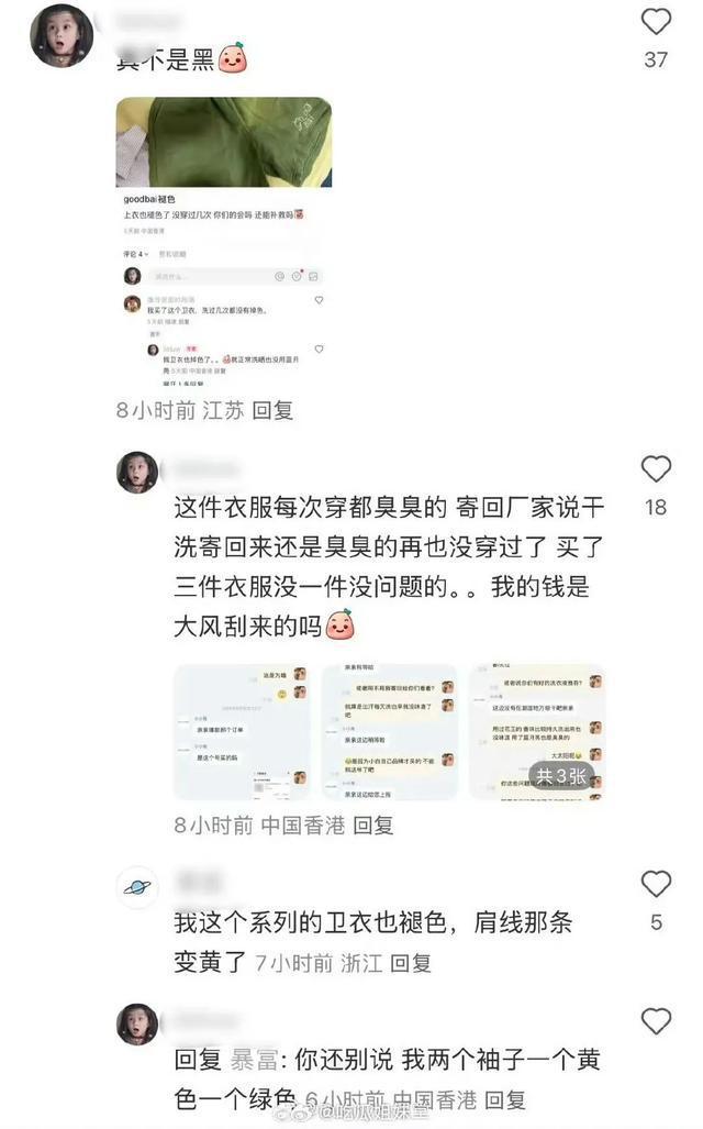 去年,上海市市场监管局通报21批次监督抽查不合格秋冬服装,GOODBAI一款牛仔外套(型号规格:170/88A L;款号:B23WFSL0101-BU),被指pH值实测为9.0(标准值应4.0~8.5),与国家强制性标准要求不符,而pH值不合格容易引起皮肤过敏。此外,还有部分用户在评论区反映该潮牌售卖的衣服存在褪色、肩线发黄、异味等问题。