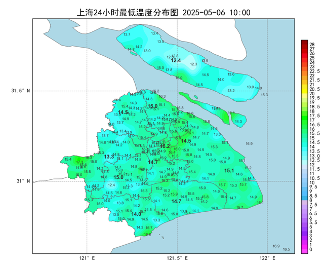 今天白天上海晴到多云,上午风向由西南转为西北,且风力增大,陆上西北风4~5级阵风6级,沿江沿海地区5级阵风6~7级。今天升温较明显,早间大部分地区的最低气温在12~15℃之间,预计白天最高气温可达28℃。风大加上昼夜温差明显,早晚较凉,不能穿得太单薄。由于夜间湿度较大,今天夜间到明天早晨上海郊区仍有可能出现大雾。