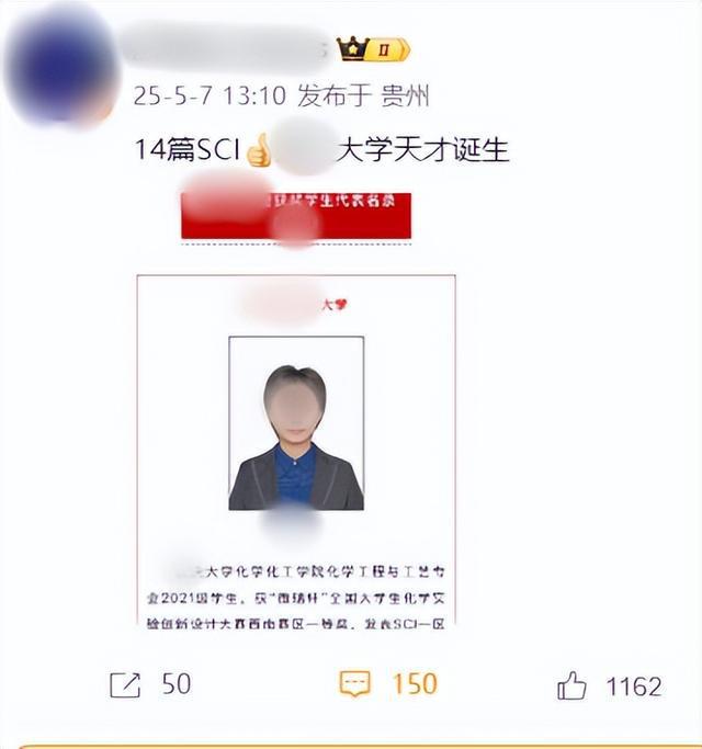 5月7日,一篇获奖文章引发关注,其中介绍,来自重庆大学的大四学生刘某乔,发表十余篇SCI论文以及获得多项国家发明专利授权。