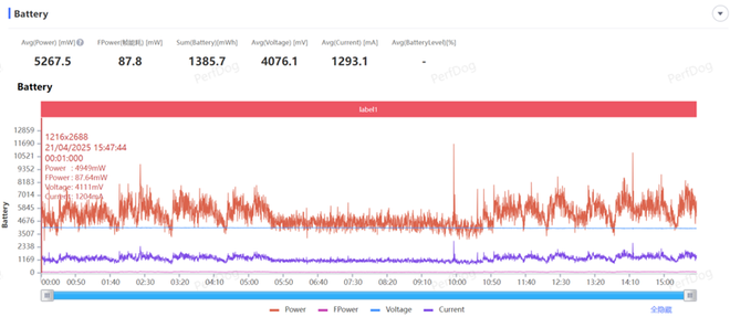 游戏的平均功耗为5.27W,游戏的能效比为11.39FPS/W,放在一众的骁龙8至尊版手机中,这成绩还是比较亮眼的。