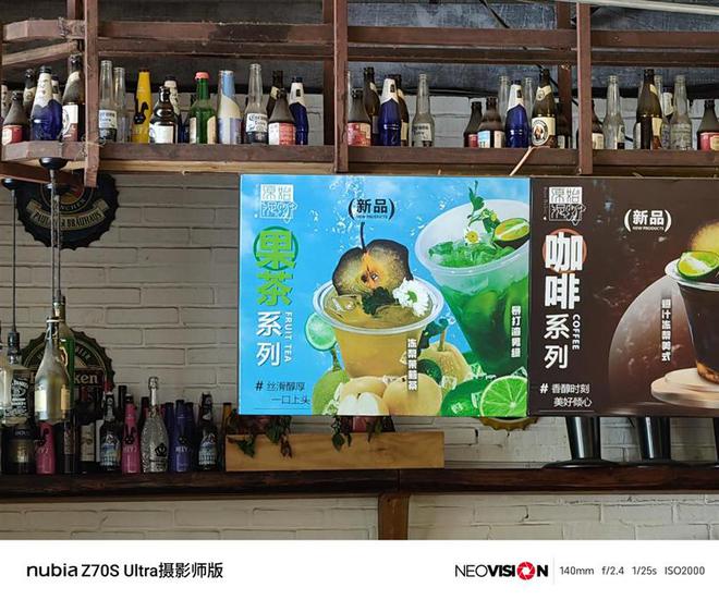 在中长焦上表现,其85mm潜望长焦镜头搭载6400万像素传感器,可实现2.4倍光学变焦。即使在复杂光线条件下,依然能精准还原色彩层次,广告文字与建筑肌理细节清晰可辨,尽管在极暗环境中细节略有损失,但整体成像质量依然稳定,完全满足日常夜拍需求。