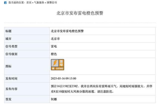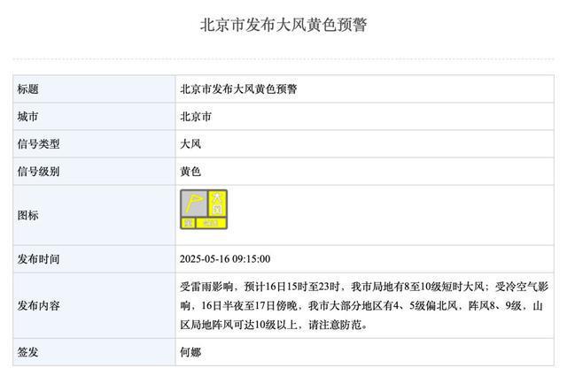 预计5月16日14时至17日14时,东北地区西部、华北中北部等地的部分地区将有8级以上雷暴大风或冰雹天气,其中,内蒙古东南部、河北北部、北京北部、天津北部等地的部分地区将有10级以上雷暴大风或大冰雹,最大风力可达11级;东北地区南部、华北北部、江南北部、华南、西南地区东南部等地的部分地区将有小时雨量大于20毫米的短时强降水天气,其中,湖南南部、江西东北部、福建西北部、贵州南部、广西北部、广东西北部等地的部分地区小时雨量大于50毫米。
