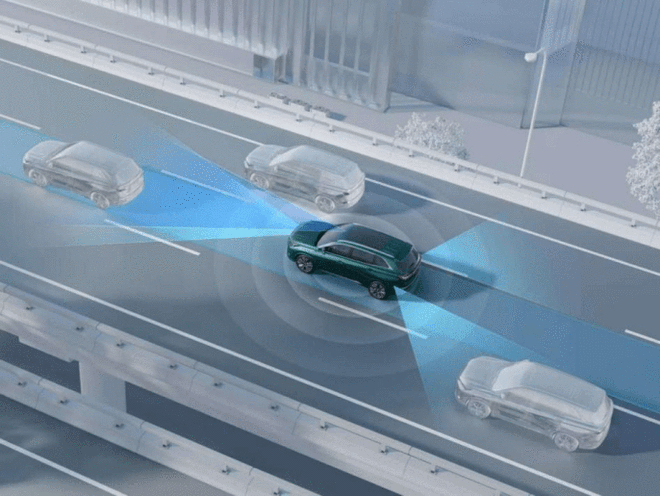 蓝电E5 PLUS先享版搭载博世智能驾驶辅助系统,支持ICA车道巡航辅助、ACC自适应巡航、AEB紧急制动等功能,并配备360°全景影像+透明底盘,提升行车安全性。