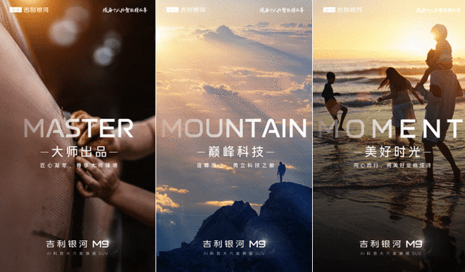 从官方信息来看,吉利银河M9定位“AI科技大六座旗舰SUV”。“M”代表Master(大师品质)、Mountain(巅峰科技)、Moment(为用户创造美好时光),全方位展现了吉利银河M9在高品质、AI科技、智能座舱体验等多维度卓越追求。