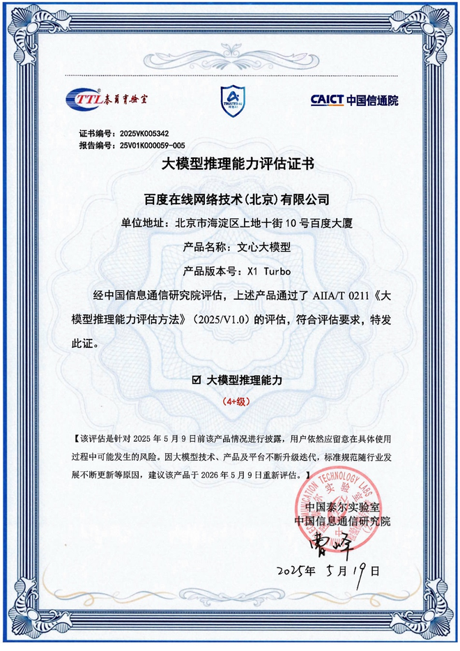 信通院发布大模型推理能力评估结果,文心X1 Turbo获首批最高等级