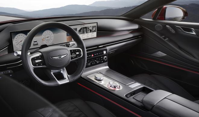 内饰方面,新款捷尼赛思G80于细节处精雕细琢。27英寸OLED一体式智能屏,带来更细腻的视觉与智能互联体验。三幅方向盘触感柔和,操作精准;一体式中控台及触控空调面板布局直观便捷,提升交互体验。电子旋钮式换挡及智能指尖操作,一键呼应,更显科技感。无线充电、氛围灯等配置进一步提升豪华感知。