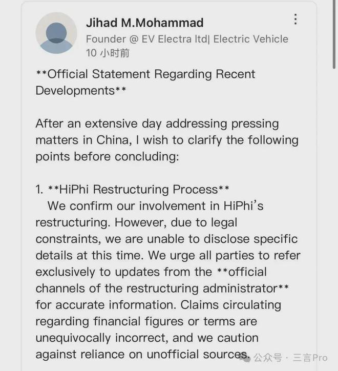 今日,穆罕默德发布声明确认参与高合重组一事。